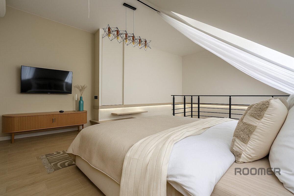 Стильные двухуровневые VIP-аппартаменты оснащены техникой и мебелью - на кухне есть все необходимое для приготовления и приема пищи.