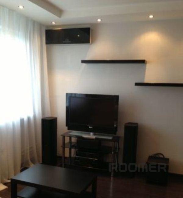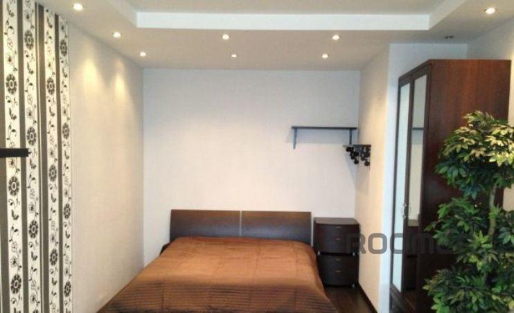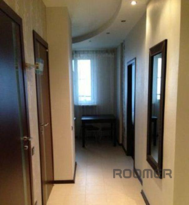 The apartment is rented for the night, hours, days. 3 minutes walk from the subway. The apartment has a special comfort, filled with all modern furniture and appliances. A spacious room with a good double bed and comfortable convertible, double sofa, armchair. Good wardrobe, LCD TV. The kitchen set under a single worktop, a dining table with chairs.