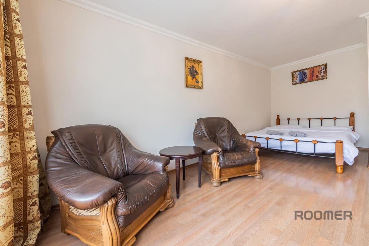 For 13th century While walking you can look at the monument “Khreschatyk metro station”. Regular guests have free Wi-Fi throughout the entire premises. The room is furnished with a double bed and 2 armchairs, as well as a coffee table, a sideboard and a wall-mounted plasma TV. For the comfort of guests, air conditioning is installed. The kitchen is equipped with kitchen appliances and household appliances: - micro-hair stove; - fridge; - gas stove with hood; - electric kettle; - fridge. The bathroom has a large Jacuzzi, a sink with a mirror, a washing machine and a boiler. Guests are always provided with fresh, white linens and clean towels. Please check the availability of your rental at the weekend using the phone number. Shvidko, without a turbo, book an apartment!