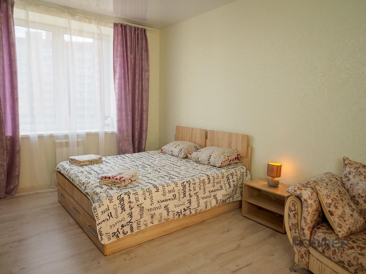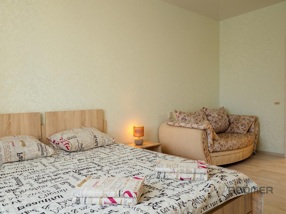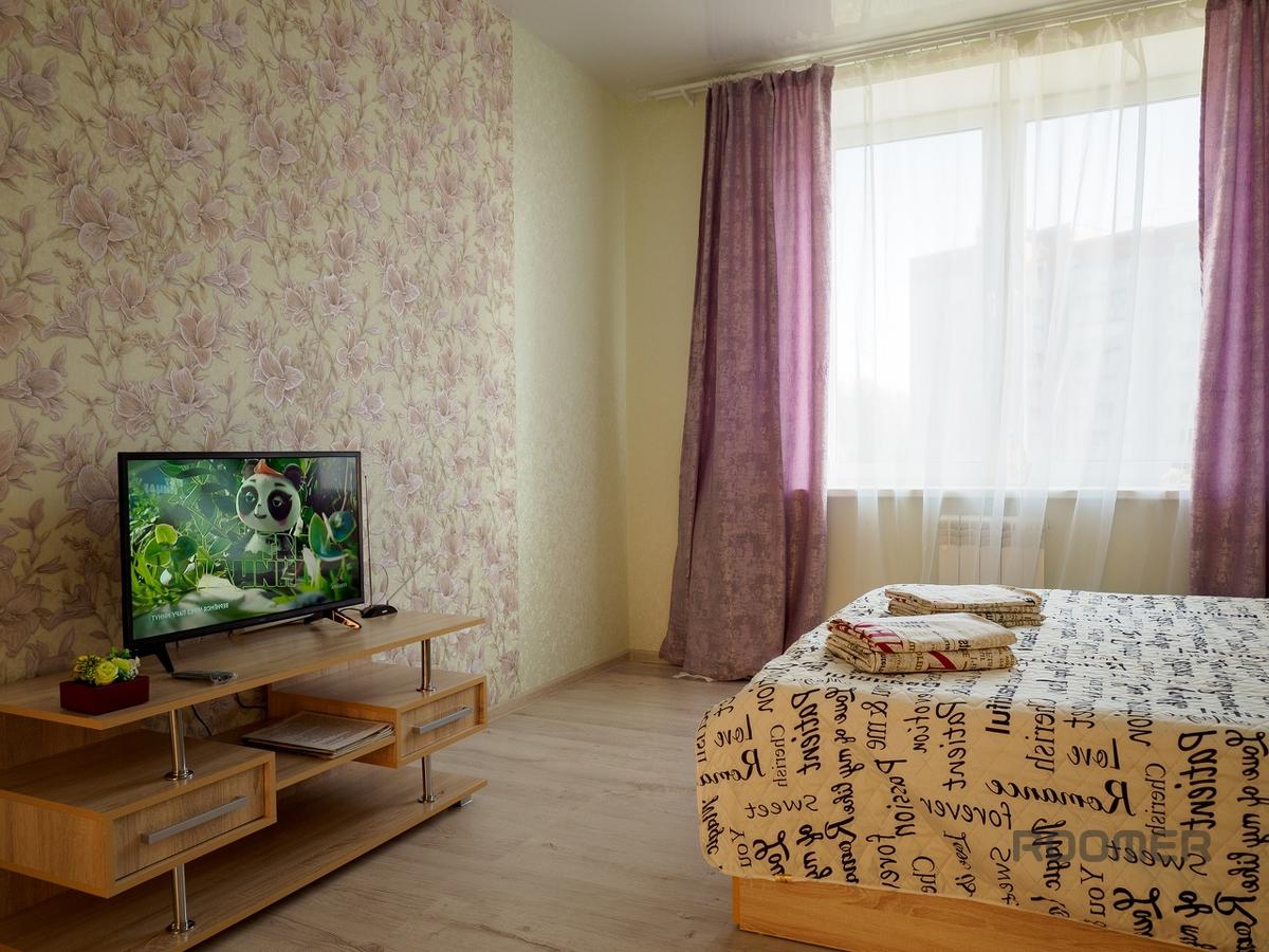 Comfortable, bright, stylish one-room apartment with good European-quality renovation in a new building. Real photographs of apartments, only reliable information. New apartment, bright stylish interior and convenient location. Large double bed, large double sofa, sleeps four. An LCD TV and unlimited Internet will help you spend your leisure time.