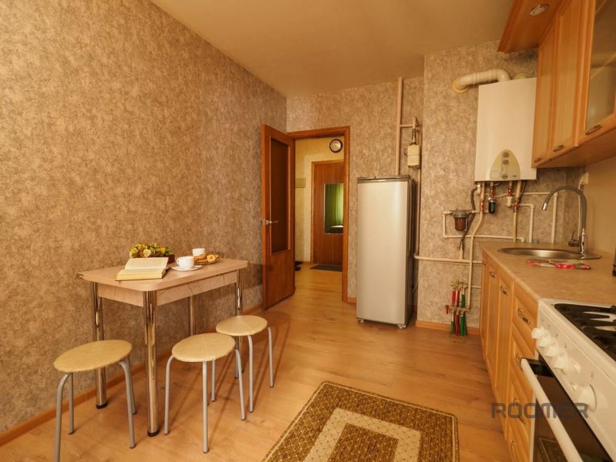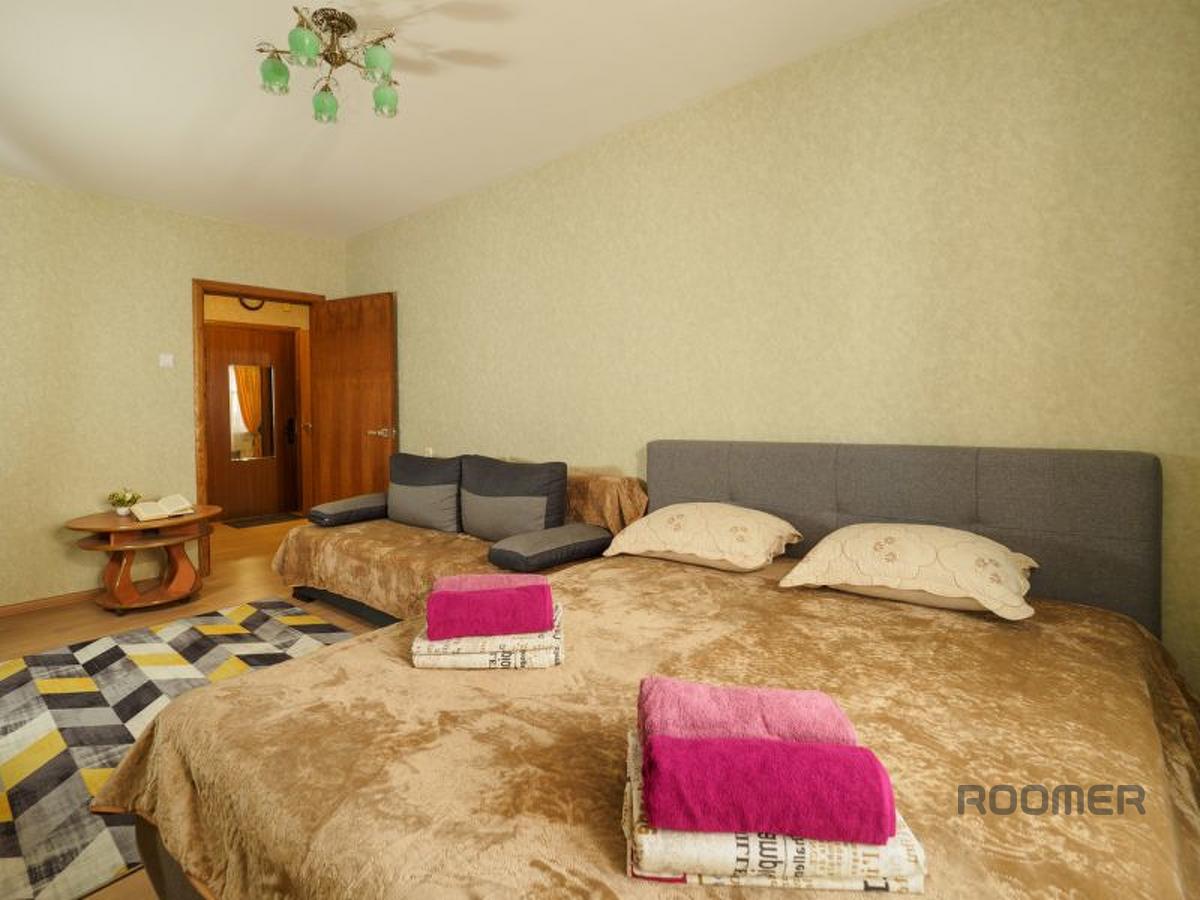 Comfortable, bright, stylish one-room apartment with good European-quality renovation in a new building. New apartment, bright stylish interior and convenient location. Large double bed, large double sofa, sleeps four. An LCD TV and unlimited Internet will help you spend your leisure time. Check out time: 12.