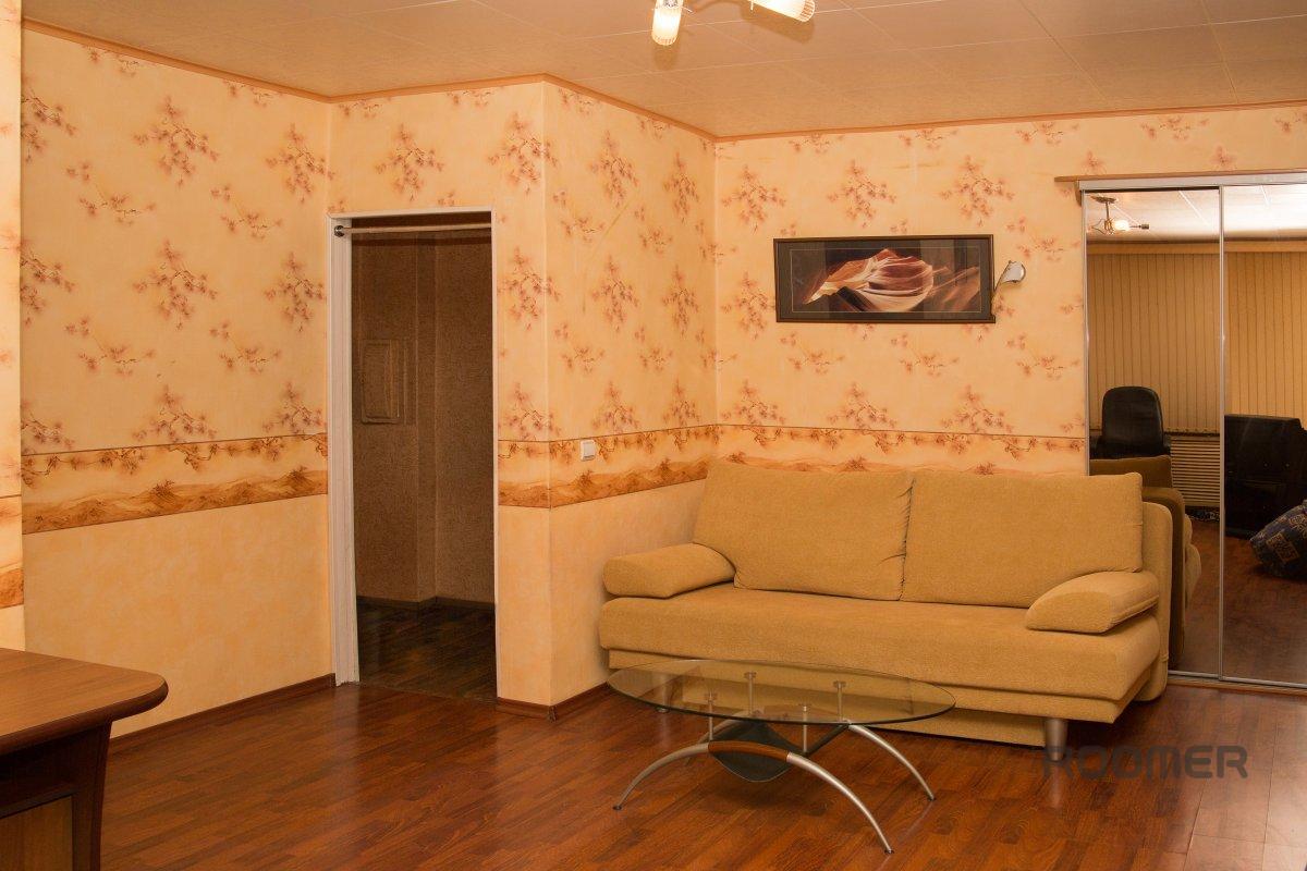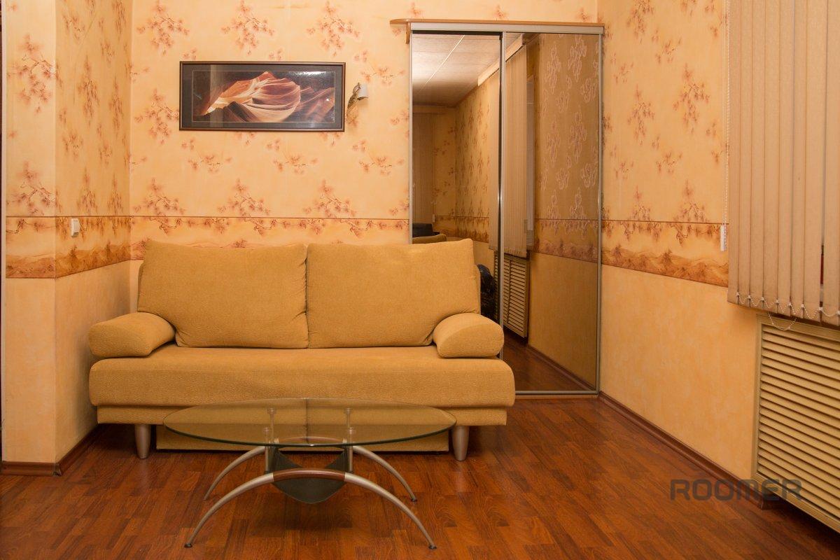 Daily rent a room "Comfort", a room with two beds and a half in a hotel apartment type. Use Double, 2 extra. place (+300 rubles for each) Ekaterinburg's historic center, 5 minutes from the Metro Square. 1905 yard with access to the "Plotinka" and Yolka main town! 1) Great view from the window on Lenin ave.